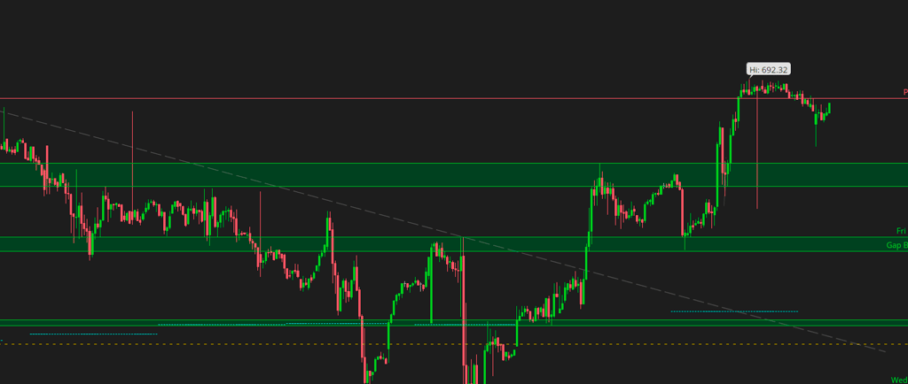 The retest of the 689 level was perfect yesterday. Definitely a clean reason to look for that long. We hit ATH into EOD yesterday.