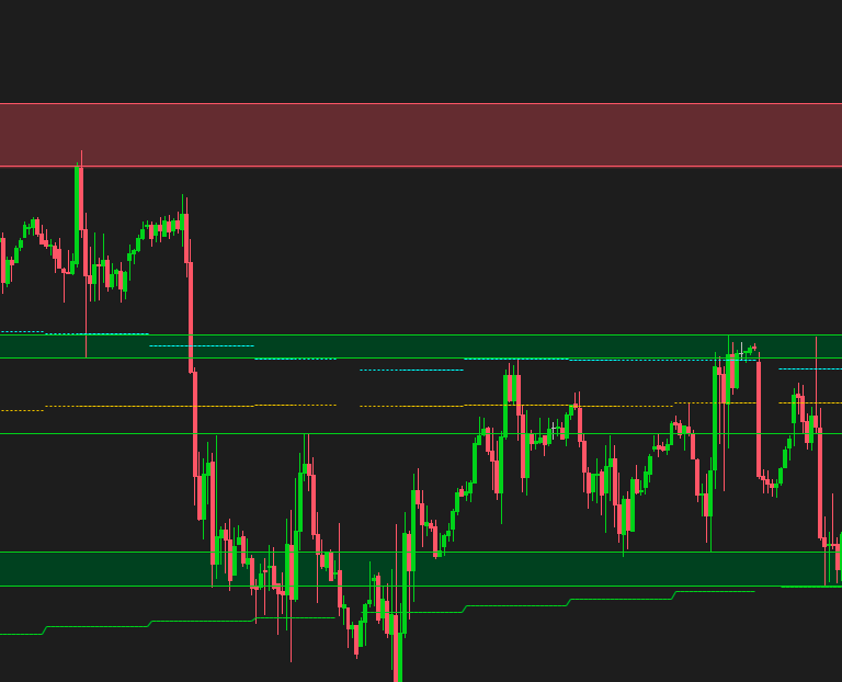 However, overhead sits heavy supply at 6,980–7,000 — a zone that has rejected price multiple times before. Not the place to press aggressive longs blindly.