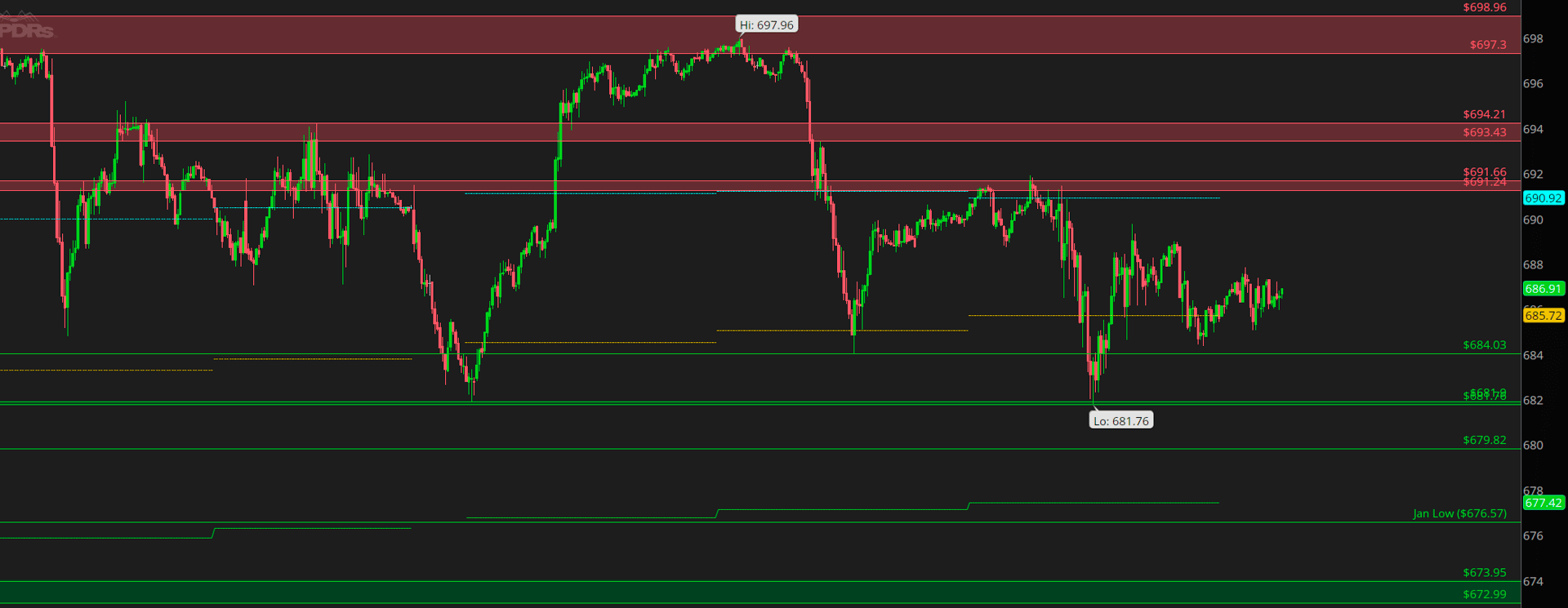 681.76/682 lows are big here. If we see fails below, we should pick up the downside pressure into the 680 & possibly the Jan lows at 676. This would also be the 100DMA level.
