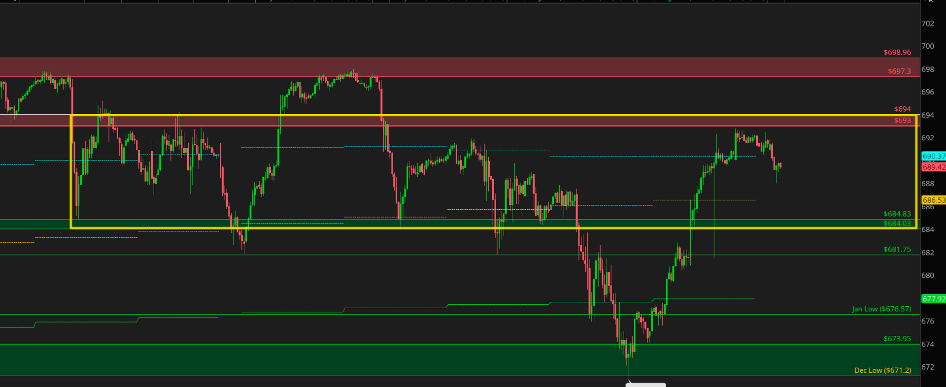 A pretty trapped move within 684 demand & 694 supply... a clean 10 point range that continues to trade on the SPY.