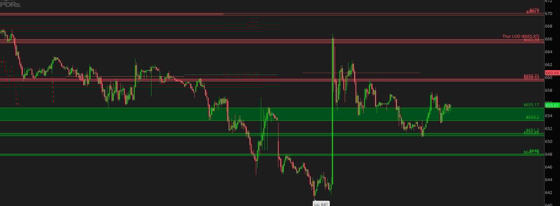 Looking for the higher low to form between 653.20/655.17. Below 650.85, we continue lower into 648. Reclaim that 200DMA for a move into 666.