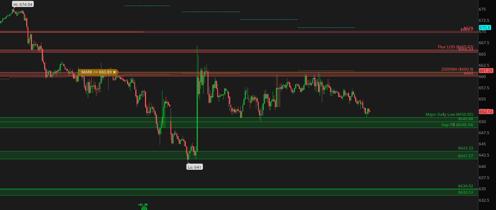 Gap fill is at 648.54... anything above that could still be bought up on this slow grind lower. If we fail below, we trade into 643/641 again. Below 641, down into 635. 200DMA rejections were perfect.