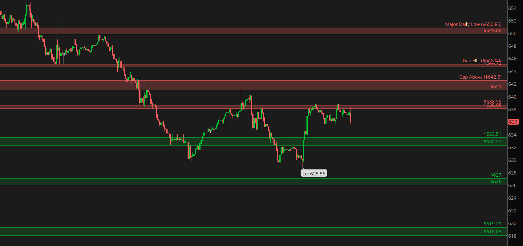 PDH causing morning failures here... another gap up on the market. Need to see a pullback into the 633 demand hold strong. If we fail back under 632.27, we continue towards the 626/627 demand. Only interest in upside is the gap to fill above 642.50.