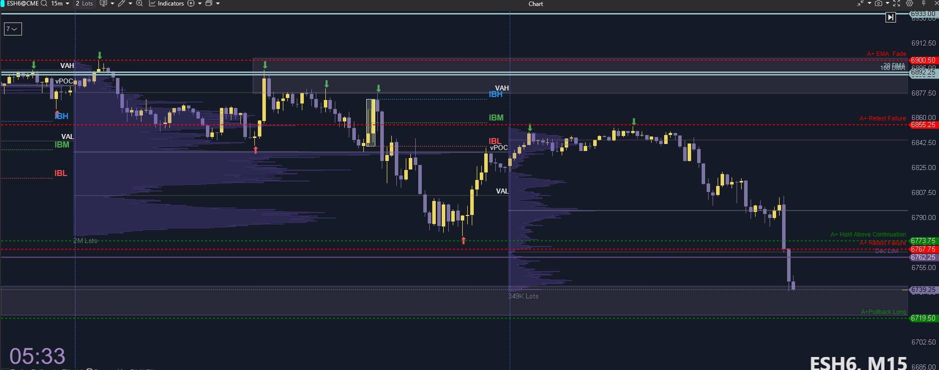 Why this works: The failure at 6,850 trapped late longs. A breach of 6,800 triggers stop-loss cascades and forces momentum sellers into the tape.